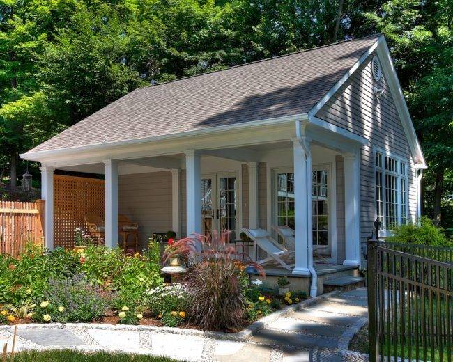 Небольшой дом в современном стиле с уютной верандой открытого типа