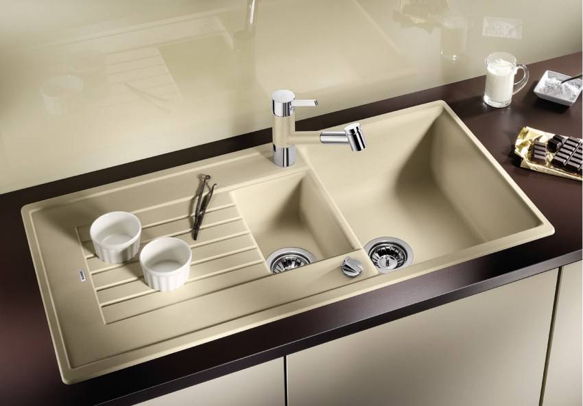 Но сказать, что каменные мойки –самые практичные, нельзя. В них не нужно ставить раскаленную сковороду. Боятся они красящих продуктов вроде свеклы. Стоят они дорого, а устанавливать их трудно.