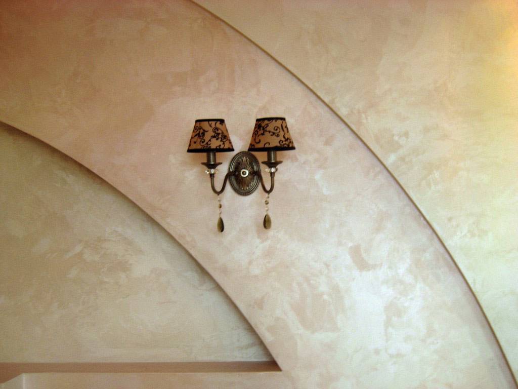 Шелковая декоративная штукатурка, фото рисунка, нанесенного по шаблону