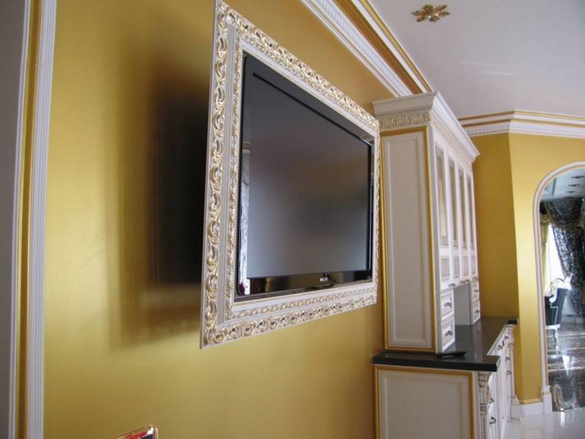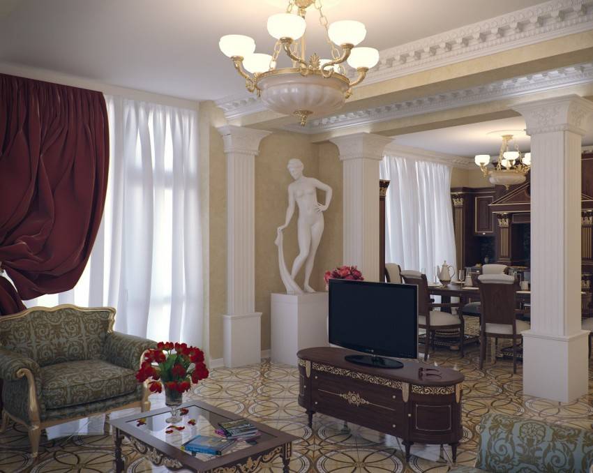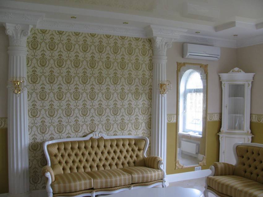 Оформить с помощью молдинга можно и различные несущие колонны или выступы (например, такие часто получаются при присоединении лоджии). Чаще всего такой прием используется в классическом и неоклассическом стиле.