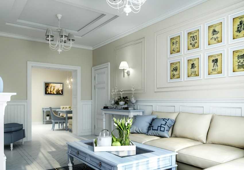 Молдинги в интерьере гостиной — очень распространенный тип декора