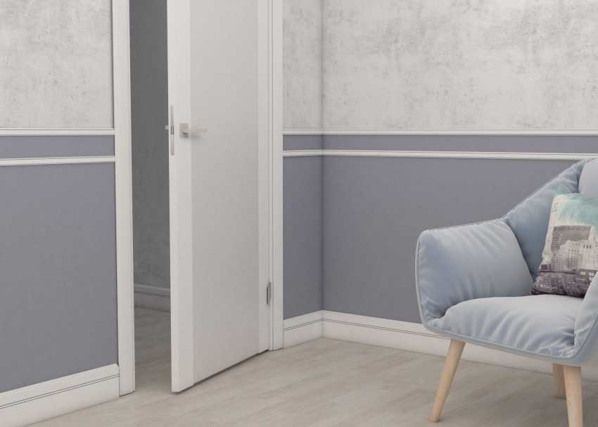 - Плавный переход в отделке стен материалами, контрастными по цвету. Такое преимущество молдингов обеспечивается благодаря их легкой окраске. Их можно покрыть краской различных видов и любого цвета.