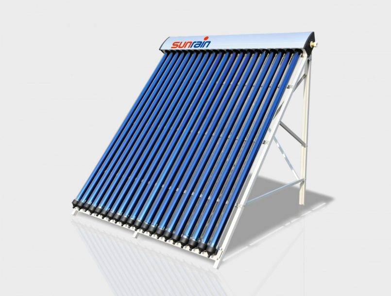Вакуумный солнечный коллектор состоит из вакуумных трубок. Наружная часть трубки прозрачная, а на внутреннюю наносят покрытие (высокоселективное) улавливающее солнечную энергию. В расстояние между трубками закачивают вакуум. В качестве проводника тепла используют тепловые трубки, наполненные жидкостью и объединённые в общий контур. Также в контур включается циркуляционный насос и бак аккумулятора. Бак представляет собой емкость, заполняемую жидкостью в котором находится теплообменник.