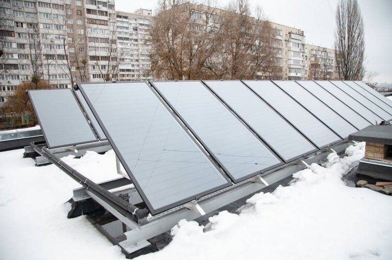 Основная проблема для всех типов солнечного оборудования в холодное время года – осадки. Если трубки покрыты снегом или инеем, их эффективность снижается. Но стоит учитывать следующее: