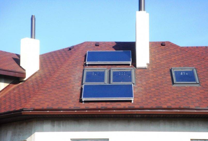 Если же солнечный коллектор расположен на крыше дома, придется включить в систему насос, который обеспечит движение воды.