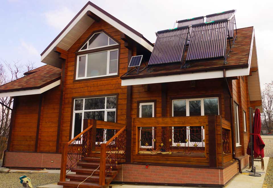 Почему бы вместо обычного сайдинга не отделать дом чем-то полезным? Например, сделав с южной стороны на всю стену солнечный нагреватель.
