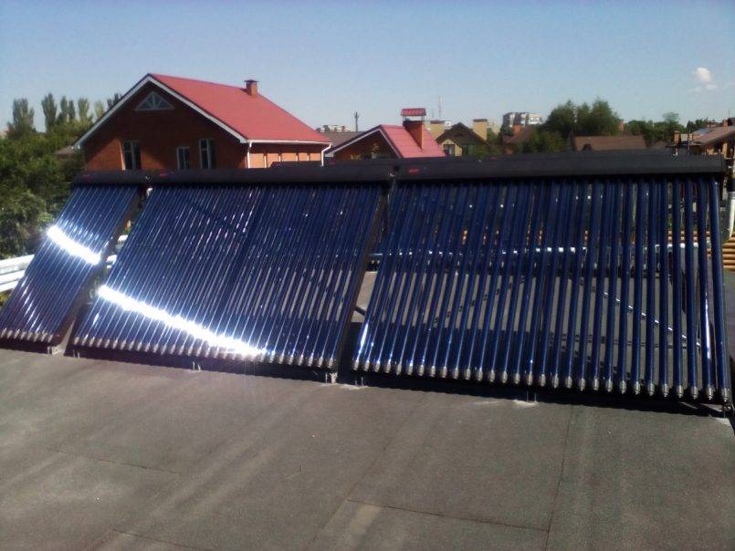 Если вы собираетесь использовать вакуумный солнечный коллектор для отопления дома зимой, значит он будет установлен под большим углом чтобы уловить максимум солнечного света. Соответственно, снег и вода будет просто соскальзывать с него.