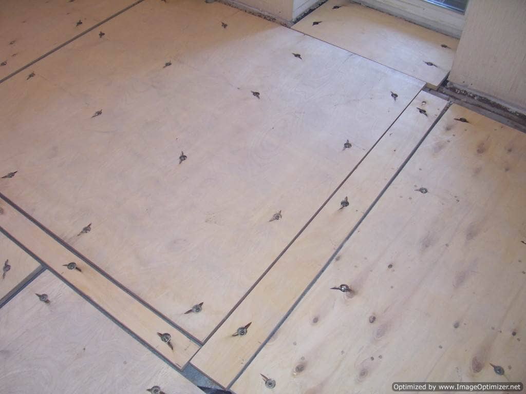 Если же деревянный пол в приличном состоянии, поверхность нужно застелить фанерой, толщиной не менее 1,5 см.