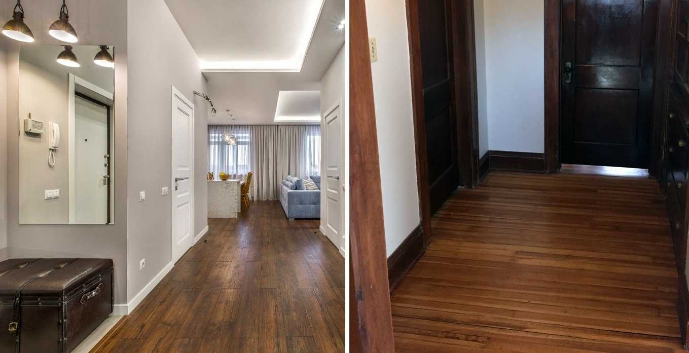 Еще в коридоре можно ориентироваться по расположению дверей. Например, вы хотите, чтобы из гостиной или столовой ламинат переходил в коридор без стыка. Тогда направление его укладки в коридоре выплывает автоматически. Оно будет продолжением покрытия из комнаты.
