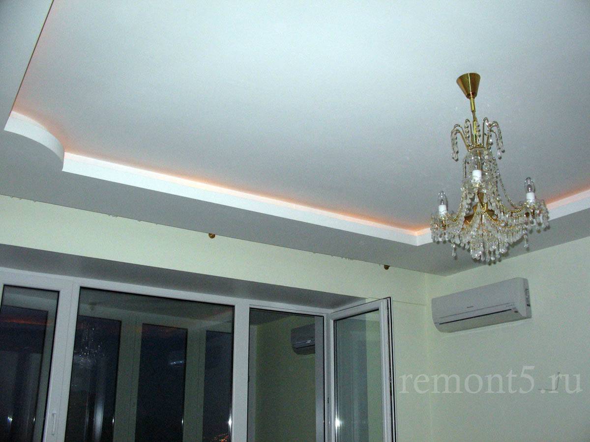 - Монтажа потолка из гипсокартона с нишей с натяжным потолком