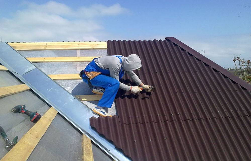 - Перед монтажом профлистов на крыше производят фиксацию гидроизоляционного материала.