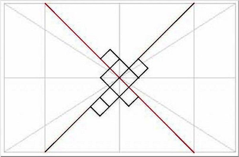 Также можно производить приклеивание панелей по диагонали. В таком случае ряды отбивают от диагональных линий на потолочной поверхности. Разбивку торцевого шва не делают, потому что плиты в зависимости от рисунка можно укладывать в шахматном порядке или со смещением шва (в разбежку).