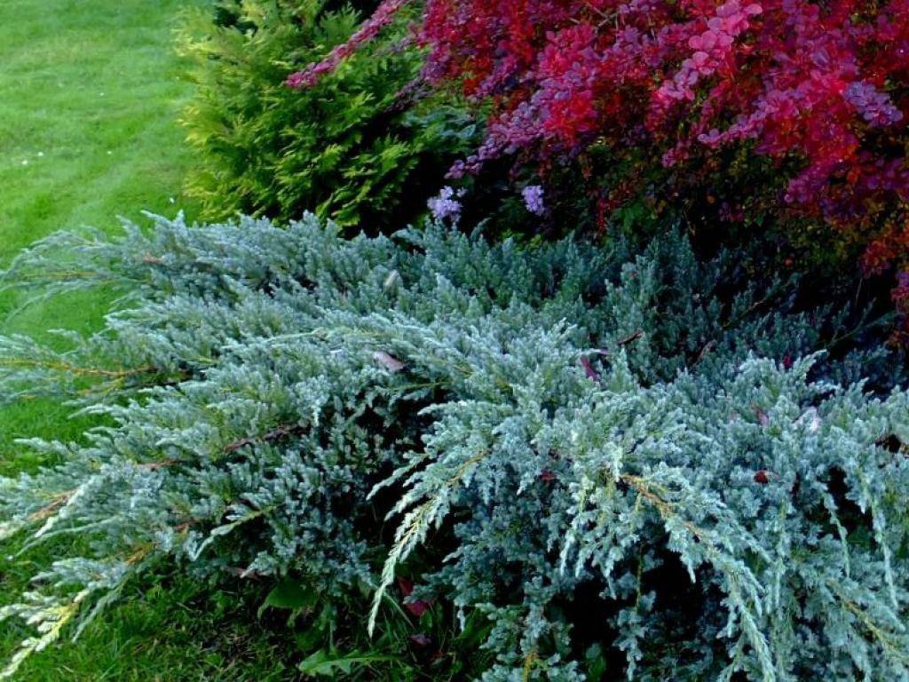 Разнообразие присутствует и в расцветке имеющихся культур – встречаются всевозможные оттенки зеленого, вплоть до сизого. От иных представителей хвойных можжевельник отличается способностью менять цвет в зависимости от сезона. Имея зеленую крону летом, некоторые сорта по осени окрашиваются в бронзовый или бурый цвет.