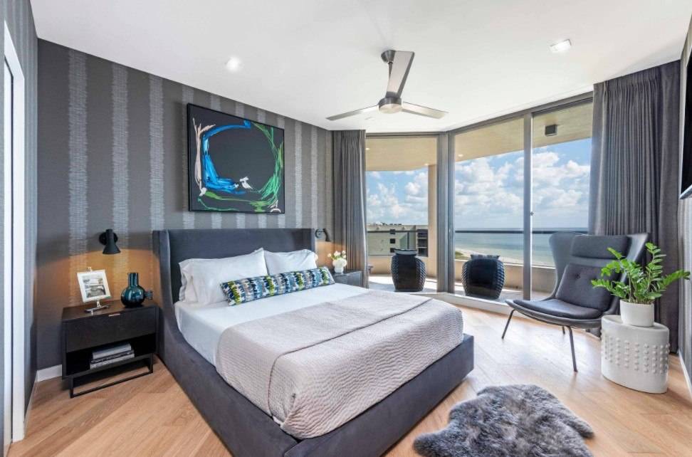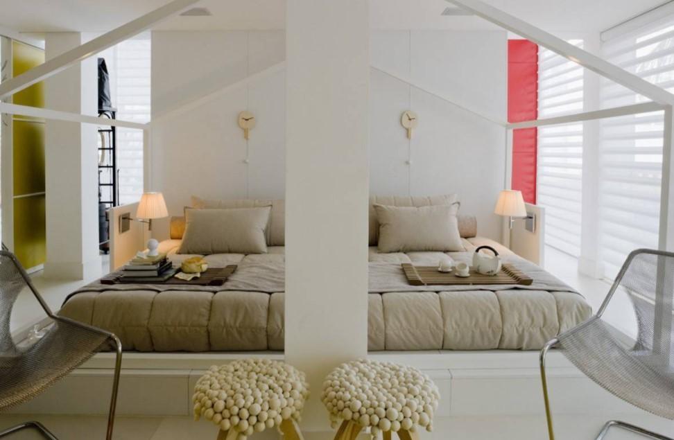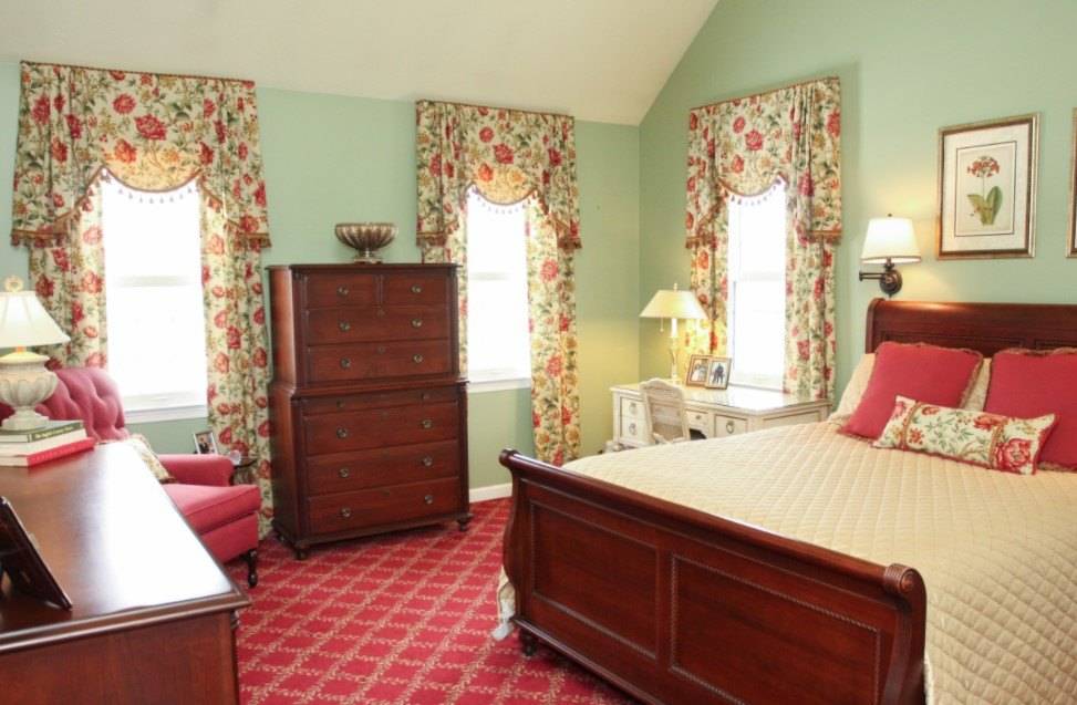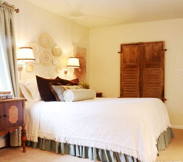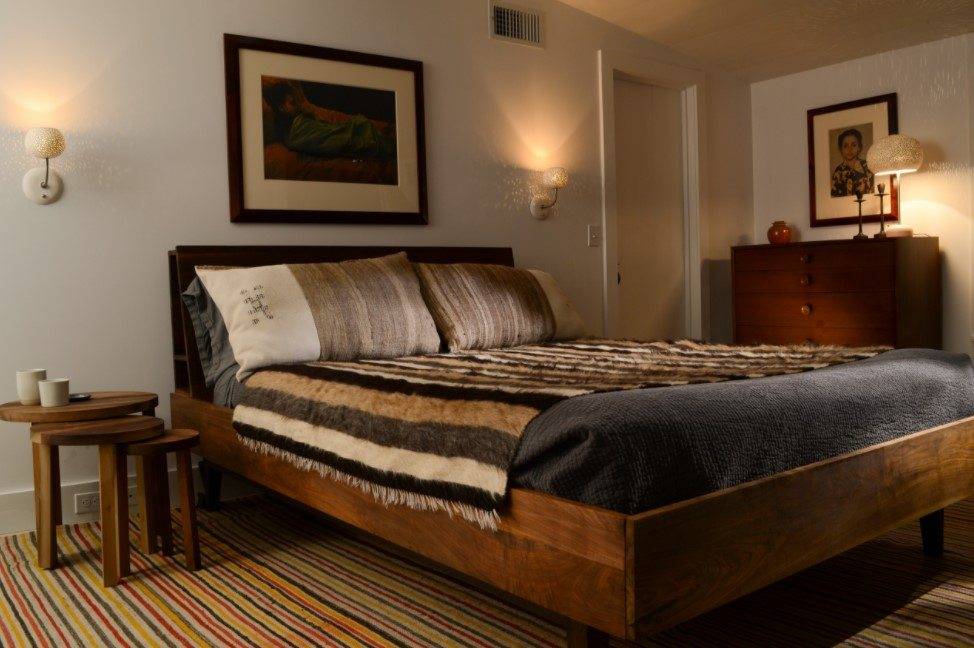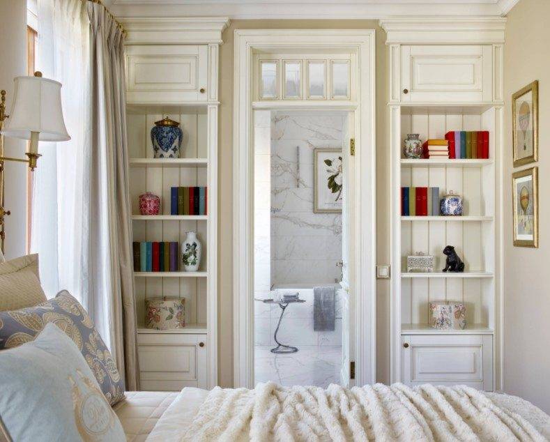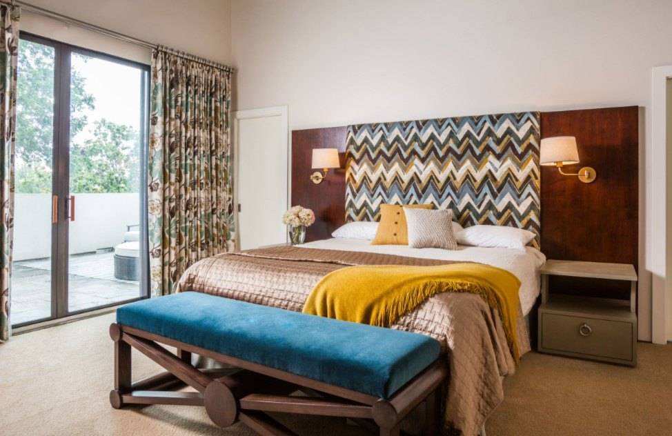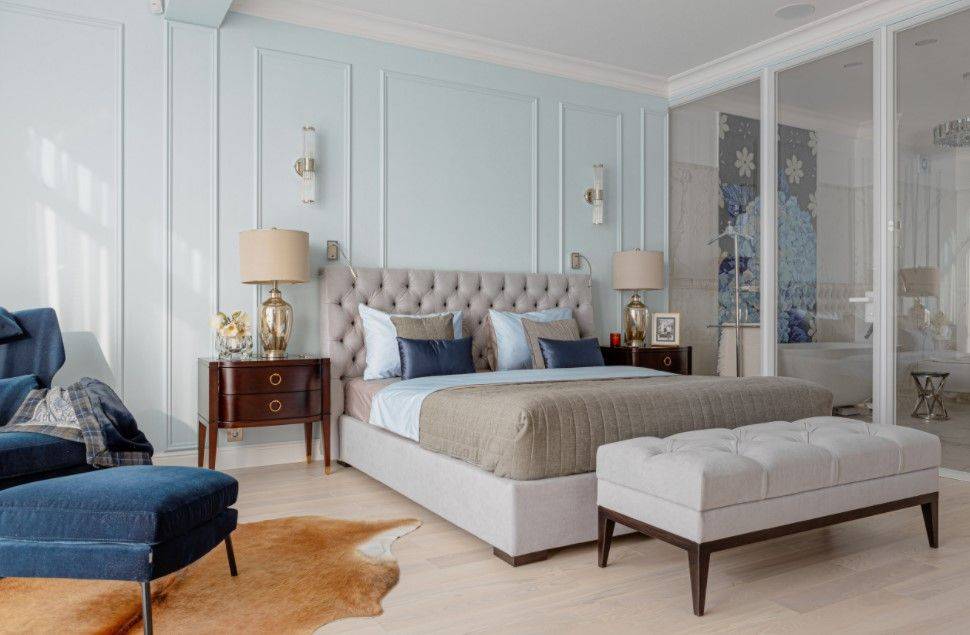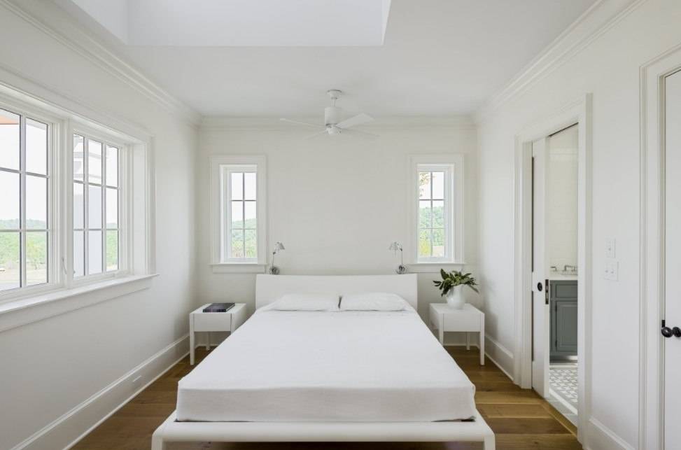 В этом случае стоит уделить внимание оформлению стены за изголовьем, а также расположению других предметов мебели и декора.