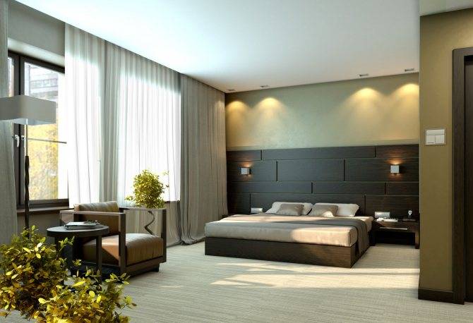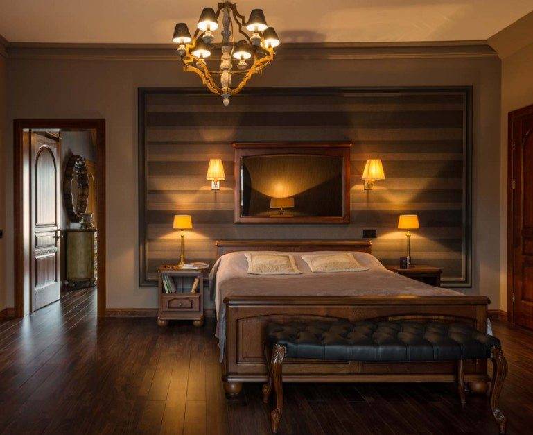 Важной частью является правильное освещение, благодаря которому создаётся особая аура в комнате. Наиболее удачной идеей для спальни является использование светильников бра. Но при их установке необходимо учитывать некоторые важные моменты