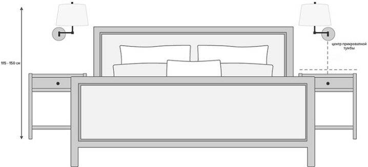 На какой высоте вешать бра над кроватью?