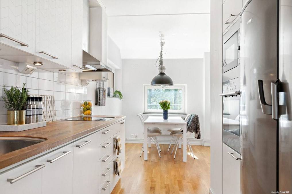 - Белый хорошо сочетается с любой кухней, особенно часто его используют в современных интерьерах.