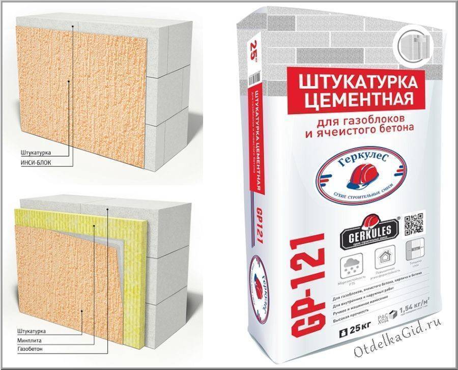 Прямое оштукатуривание ячеистых бетонов требует использования специальных составов, но при монтаже утеплителя можно воспользоваться более простыми и дешевыми растворами