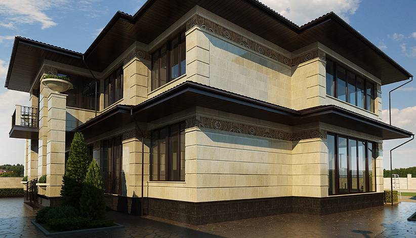 - фасадный, применяемый при отделке внешних стен зданий. Такая отделка используется на фасаде любого типа;