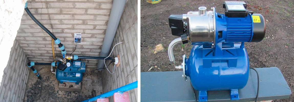 Поверхностные насосы устанавливаются непосредственно в насосную станцию, чаще всего на гидроаккумулятор. Погружные же насосы опускают под воду, и они качают воду в бак на удалении.