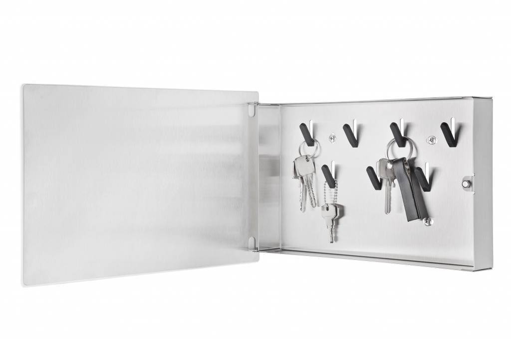 Ключ не обязательно должен быть на виду. Ключницу оформляют как закрытую полку. Внутри нее спрятан крючок или несколько отделений. Туда ключи кладутся, как в сейф. С таким оформлением ключи не увидят посторонние, которым вы не доверяете, вроде уборщицы или сантехника. Однако такое расположение не всегда удобно. Если проход узкий, пространство уменьшится, станет трудно двигаться.