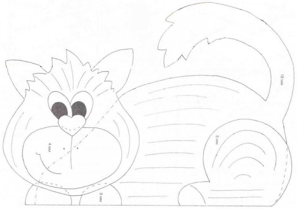 - Шаблон туловища переводим на клееную панель, все шаблоны лап — на 8-мм. фанеру, шаблон мордочки — на 4-мм фанеру. выпилить лобзиком.