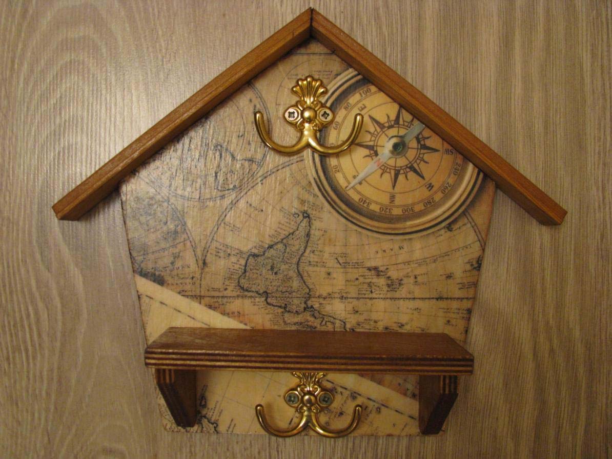 Техника очень интересная, с ее помощью можно обновить и придать другие видовые характеристики многим поверхностям. Самая главная ее особенность в том, что здесь просто нет предела фантазии. А купить декупажную карту для оформления вашей ключницы можно совсем недорого. Также можно использовать для оклеивания обычные столовые салфетки с рисунком.