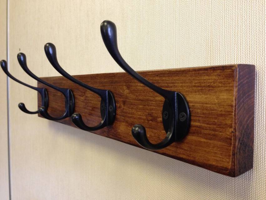 В зависимости от интерьера можно придумать собственный дизайн настенной вешалки и самостоятельно ее установить