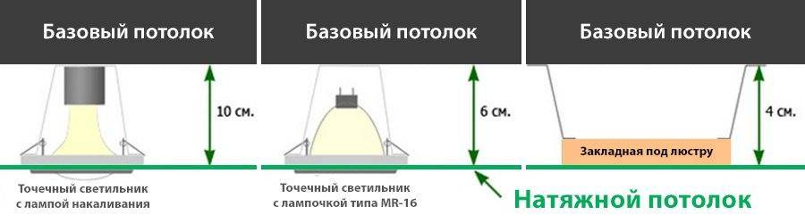 Приборы освещения влияющие на высоту отступа