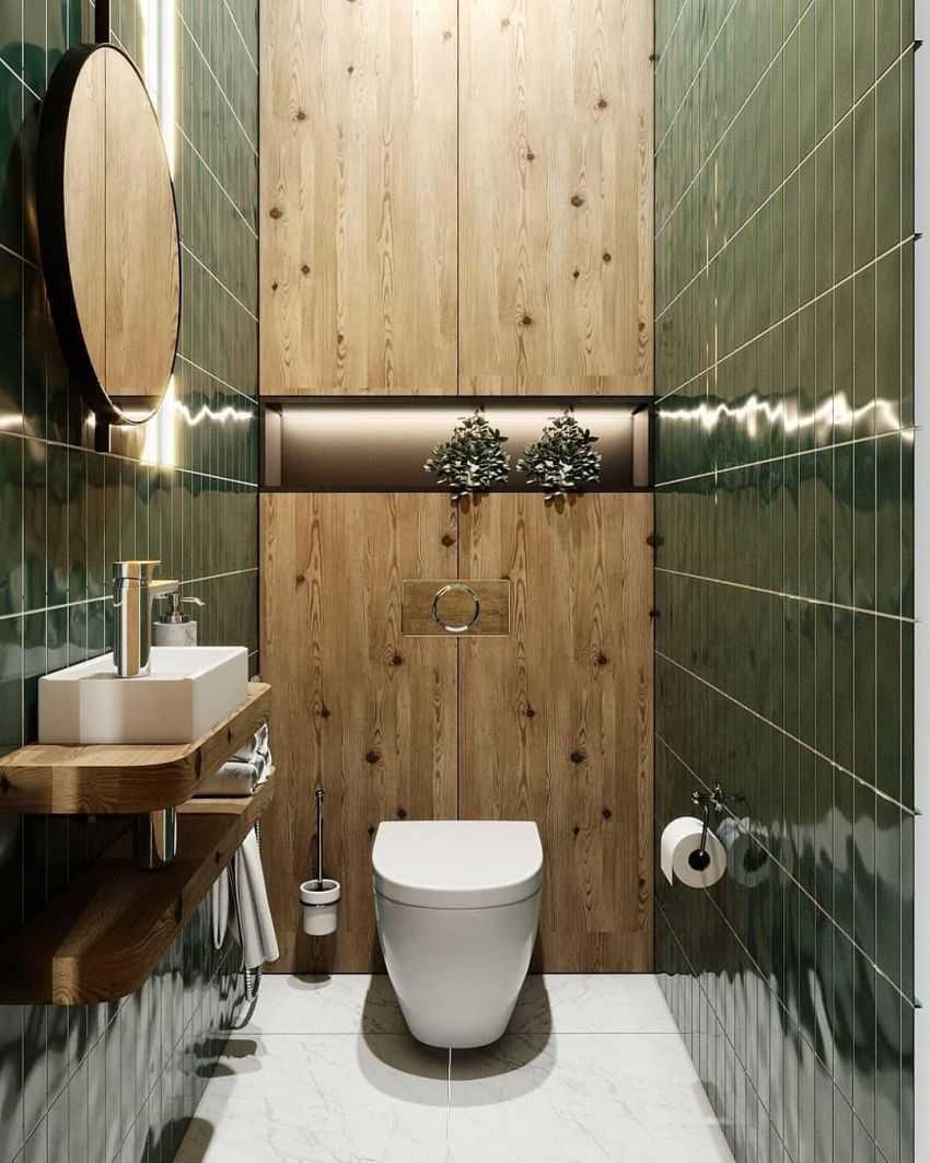 Поэтому важно не размещать в туалетной комнате ничего лишнего, используя с умом каждое свободное пространство