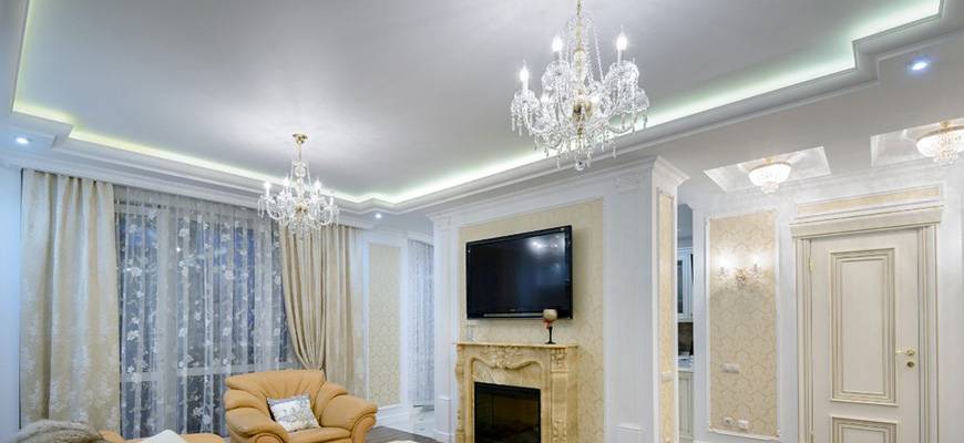 - парящий потолок. Этот необычный визуальный эффект получают благодаря расположению ламп за карнизом. В данной ситуации свет будет максимально рассеиваться, создавая впечатление, что потолок висит в воздухе;