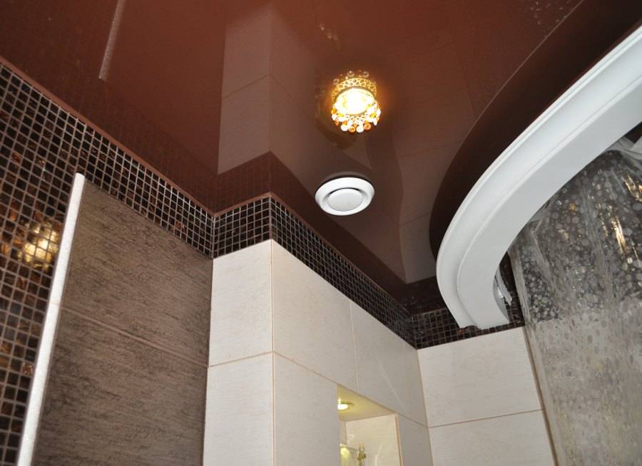 Оптимальная последовательность оборудования показана на фото натяжных потолков в ванной комнате ниже и предполагает следующие этапы: