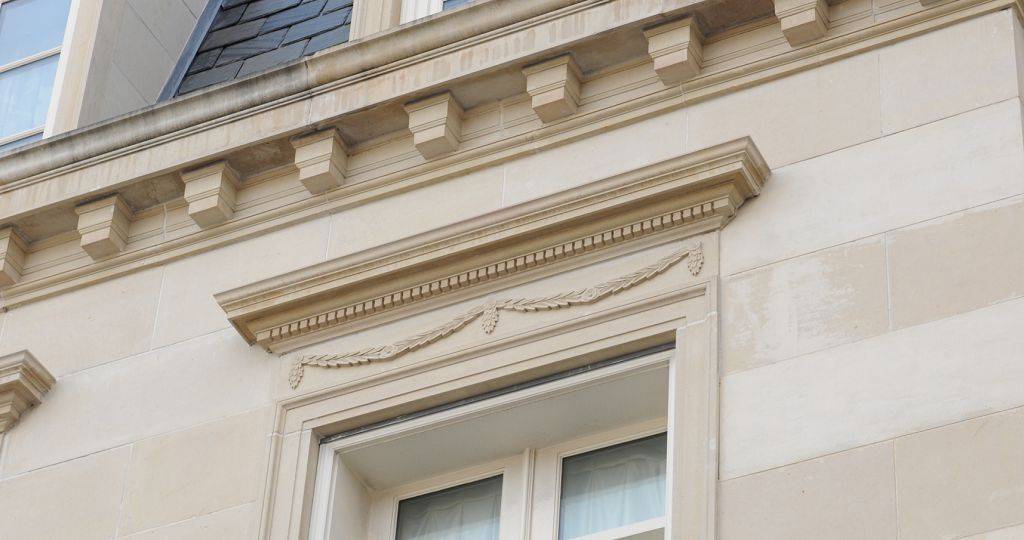 Для облицовки фасадов используют различные типы искусственного декоративного камня. Отдельные элементы зданий украшают изделиями художественного декора из аналогичного материала: ими оформляют вход, ниши и другие части строения.