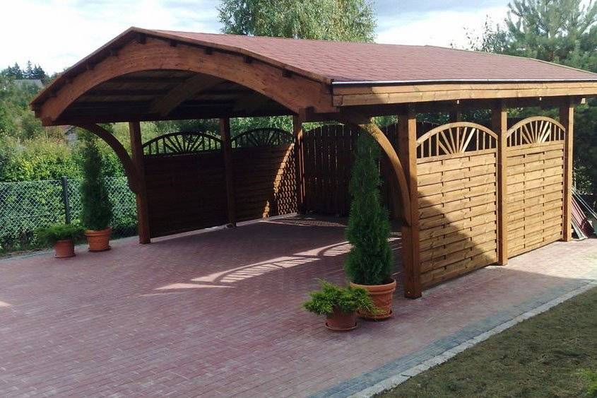 Опоры из кирпича, из камня или из бетона неплохо смотрятся и не требуют дополнительных мер по защите, при этом их долговечность составляет десятилетия. Применение дерева считается более дешевым вариантом несмотря на то, что дерево требует качественной защиты и не отличается долговечностью. Крыша не обязательно делается из того же материала, что и колонны. Подобный подход позволяет иметь уникальную конструкцию, где сочетаются не сочетаемые элементы конструкции. Как правило, каждый хочет уйти от шаблонов, чтобы получить свою, уникальную постройку.