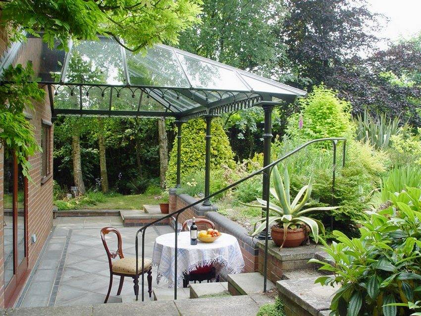 Навесы отличаются между собой не только внешней формой, но и местонахождением. От этого зависят конструктивные особенности козырька и способы его крепления.