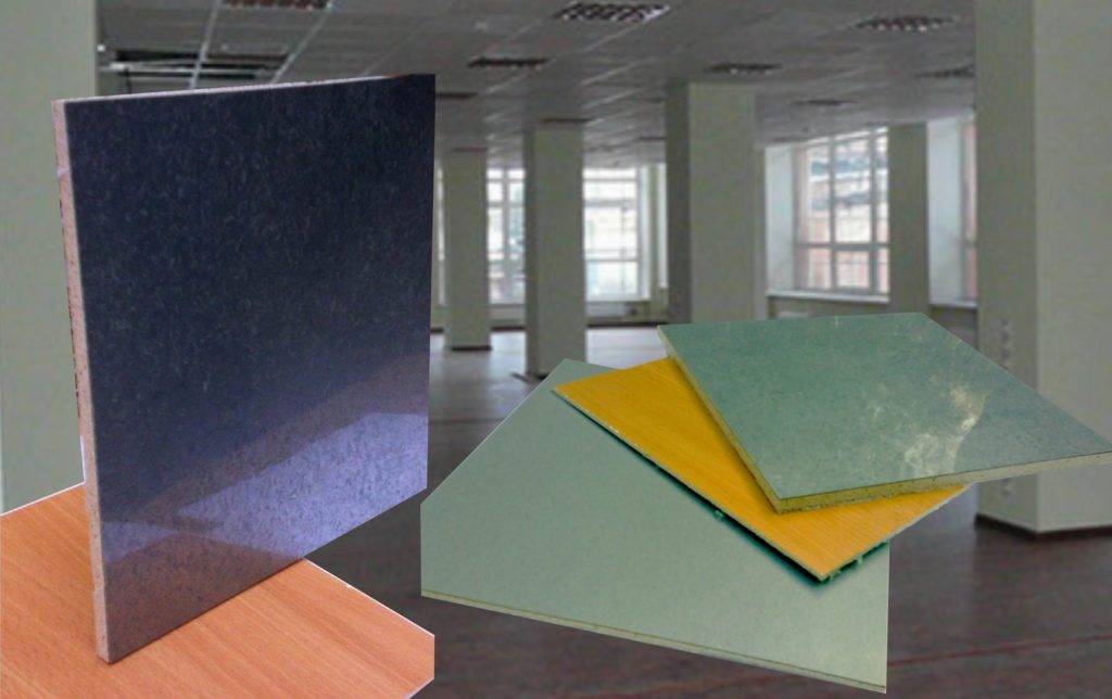 Нередко негорючие панели встречаются на стенах и потолках. На потолок монтируются тонкие и легкие листы, толщиной 3 мм, а для стен выбирают продукцию толщиной от 5 до 8 мм. Для создания перегородок подойдут панели от 6 до 10 мм. В качестве внешней облицовки применяются листы более 1 см в толщину. Их можно стелить и на пол.