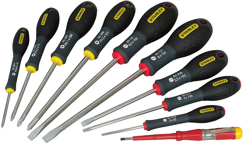 Наиболее часто используемыми в работе инструментами являются отвертки различных типов. Они необходимы для затягивания контактных клемм, закручивания саморезов и болтов, а также при демонтаже старого оборудования. Лучше всего приобрести длинные изолированные отвертки, имеющие плоский и крестовой шлиц, двух или трех различных размеров (в зависимости от особенностей выполняемых работ).