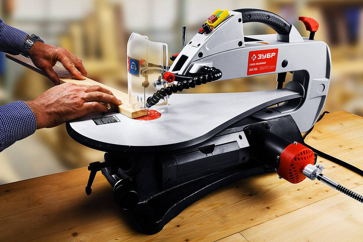 Помимо ручных, существуют еще и настольные лобзики которые стационарно устанавливаются на стол. Их еще называют лобзиковыми станками. Такие лобзики делают более качественный пропил, так как более устойчивые за счет большого веса. Лобзиковый станок это нечто среднее между электролобзиком и швейной машиной.