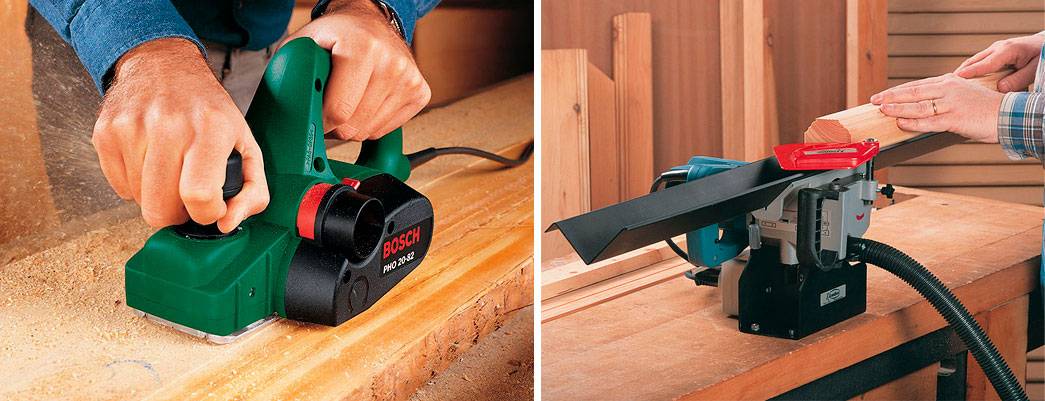 Некоторые модели оснащены специальной рамкой, которая превращает ручной электрорубанок в импровизированный стационарный фуганок.