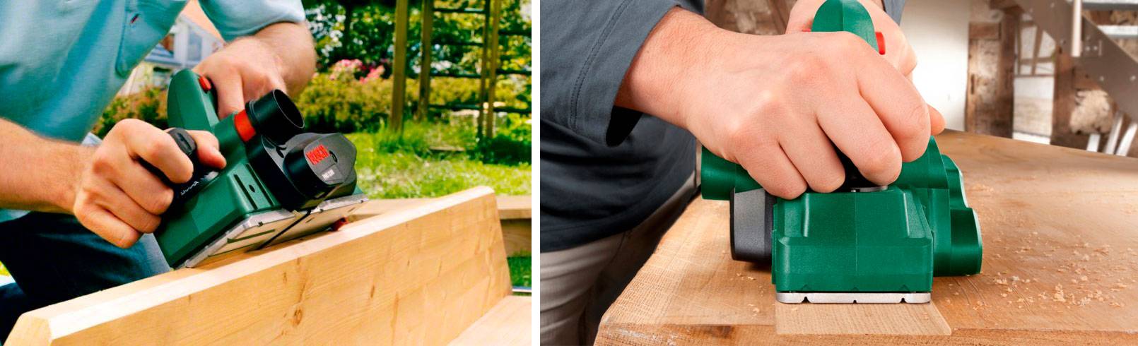 После проверки электрического рубанка и его настройки можно переходить непосредственно к эксплуатации. Прежде всего, следует выбрать удобное рабочее положение: