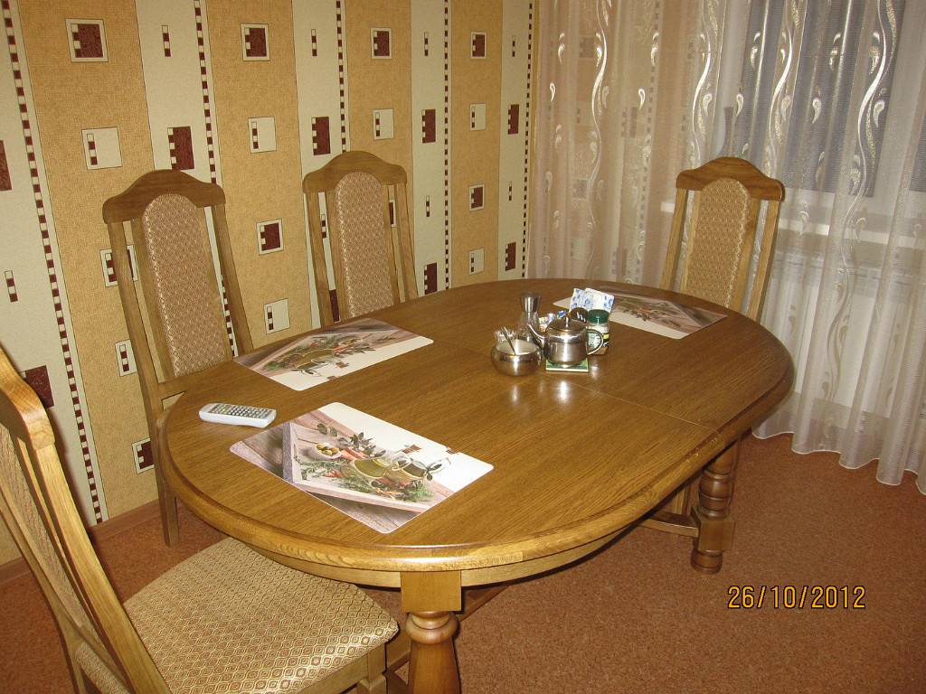 Распространенной моделью среди круглых столов является стол-трансформер, который в случае необходимости раскладывается в овальную форму и становиться полноценным обеденным столом для большой семьи.