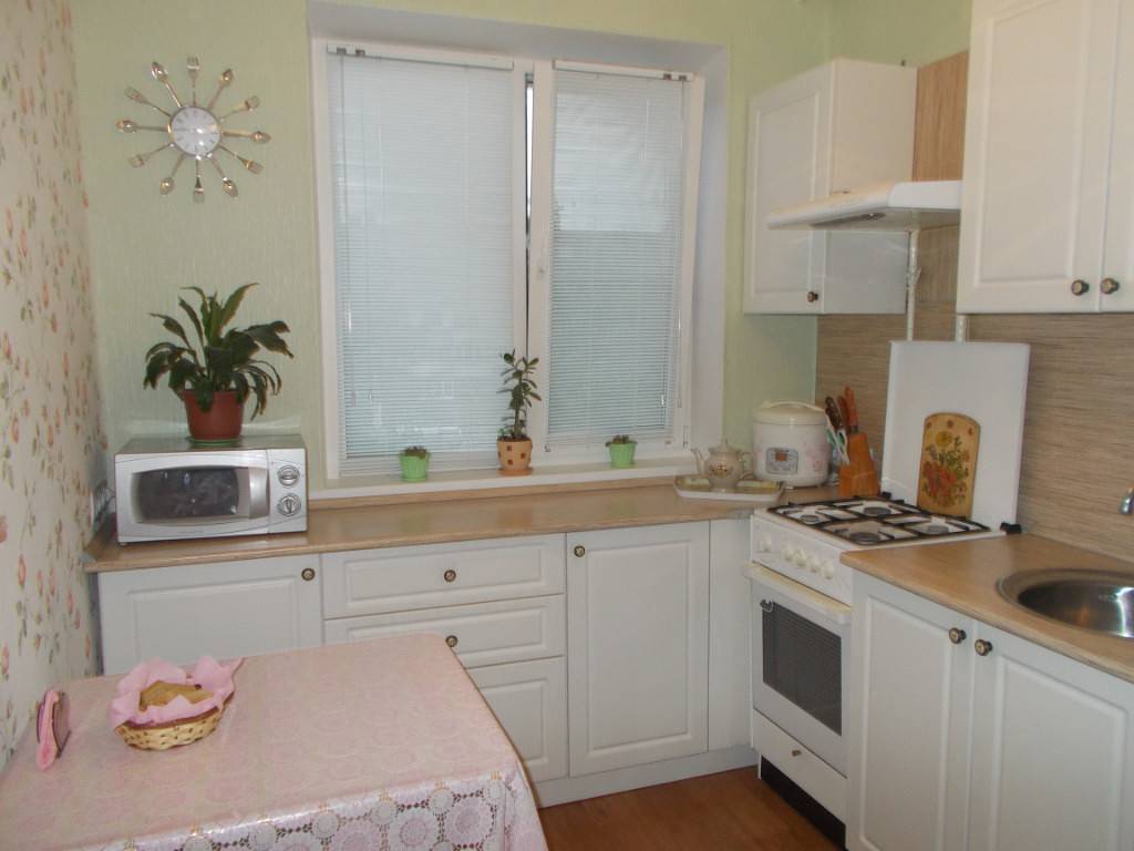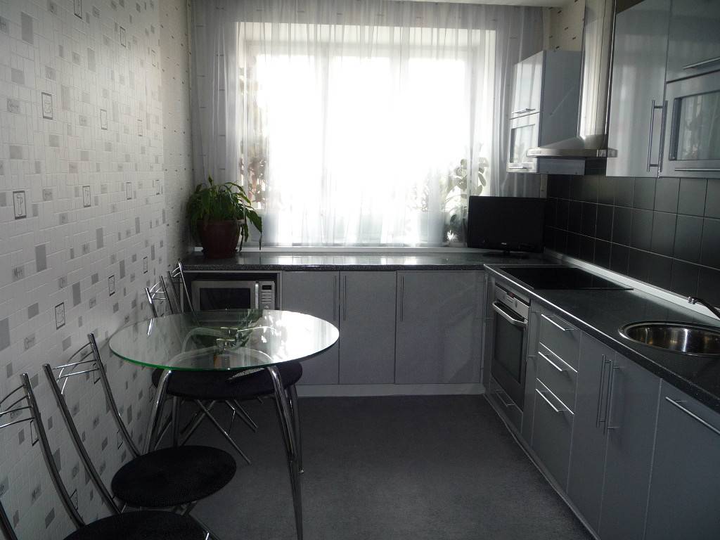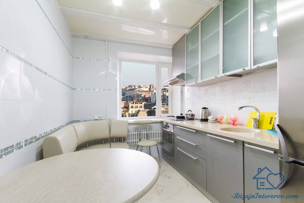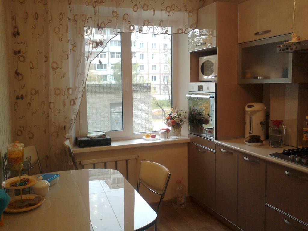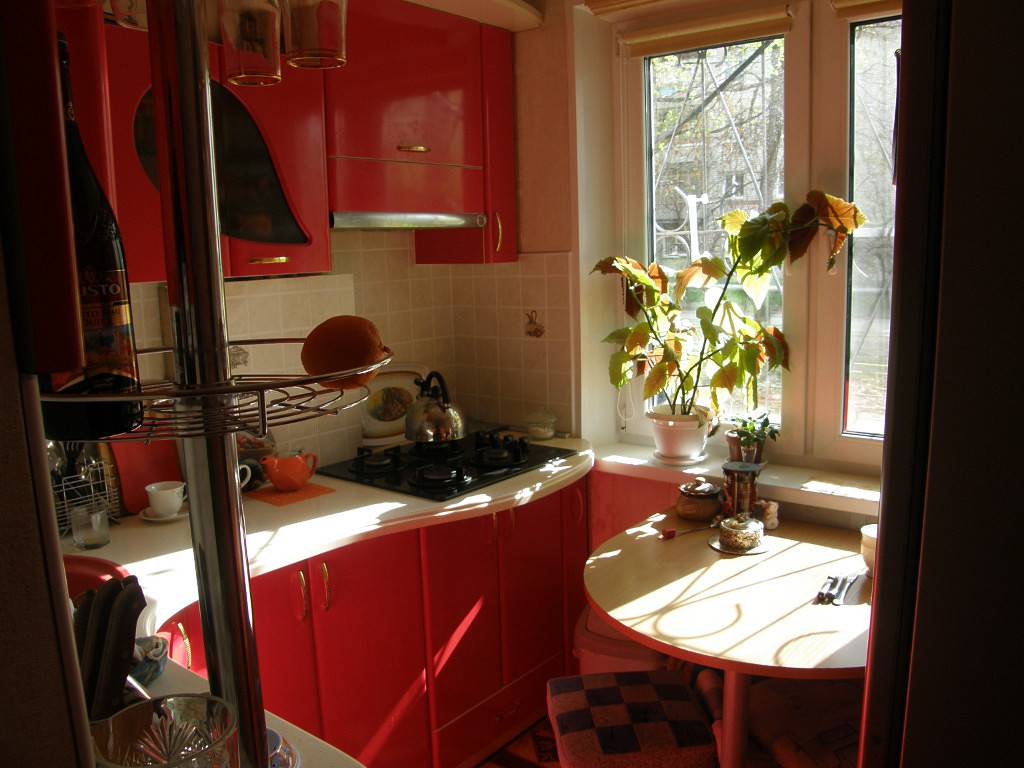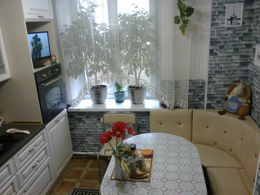 Квартиры-хрущевки прославились своими небольшими кухнями, в которых трудно находиться даже двоим людям, не говоря уже о семье. Здесь присоединение кухни к большой комнате более чем оправданно. Два окна делают помещение очень светлым. Передвигаться становится значительно легче. Как правило, при такой перепланировке появляется ниша, в которую можно поставить холодильник. За столом может уже безо всякого стеснения разместиться несколько человек. Сама по себе такая перепланировка оживляет всю комнату, квартира становится уютной.