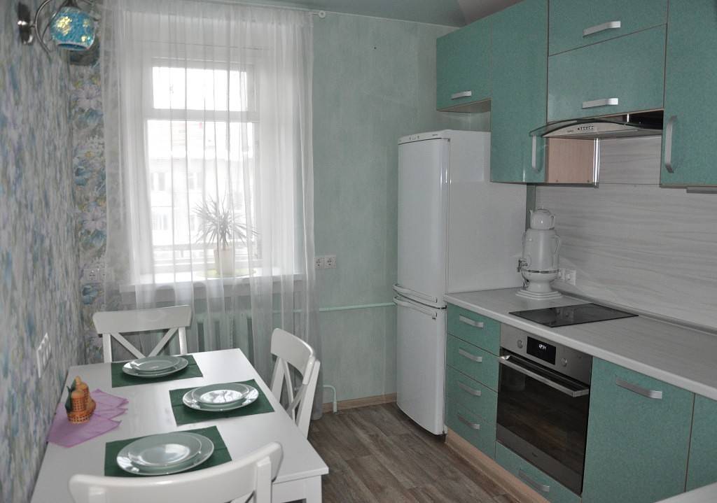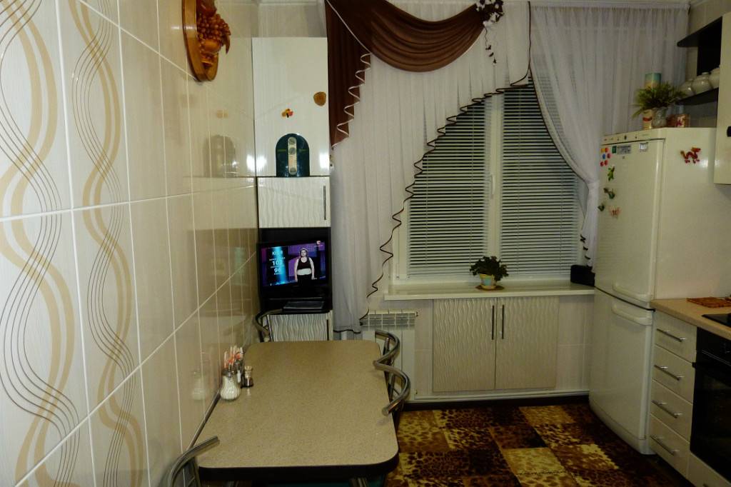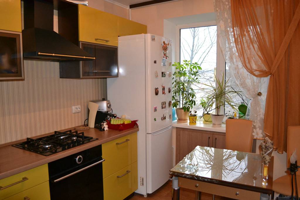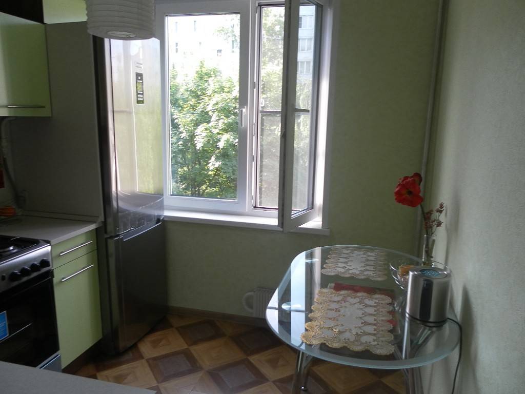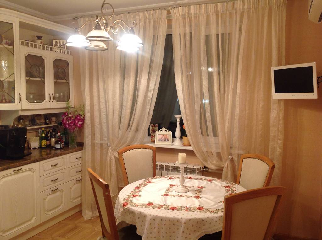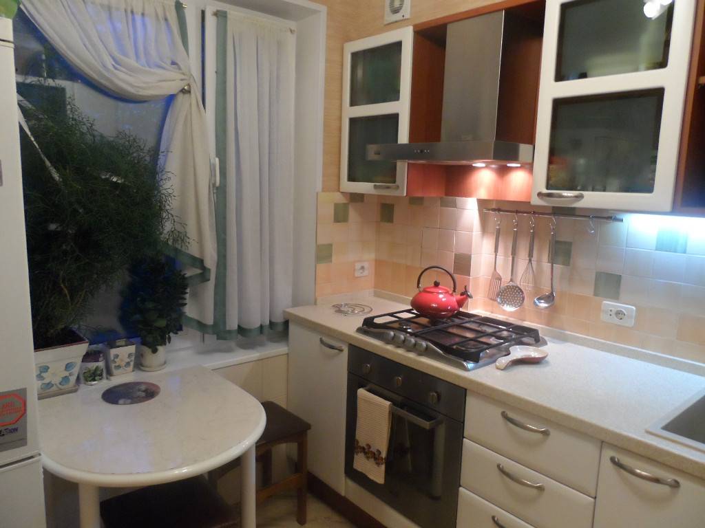 Квартиры-хрущевки прославились своими небольшими кухнями, в которых трудно находиться даже двоим людям, не говоря уже о семье. Здесь присоединение кухни к большой комнате более чем оправданно. Два окна делают помещение очень светлым. Передвигаться становится значительно легче. Как правило, при такой перепланировке появляется ниша, в которую можно поставить холодильник. За столом может уже безо всякого стеснения разместиться несколько человек. Сама по себе такая перепланировка оживляет всю комнату, квартира становится уютной.