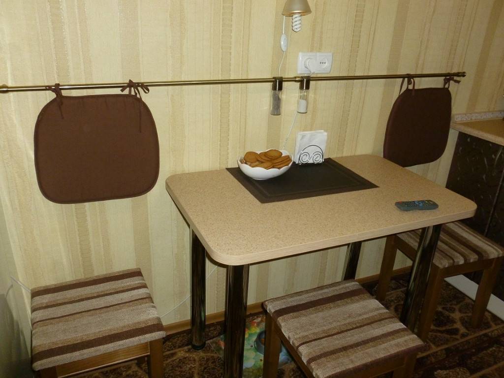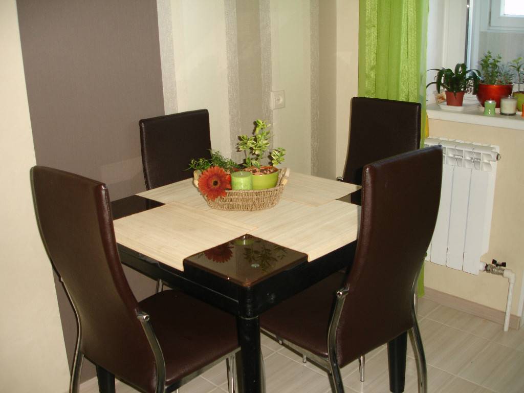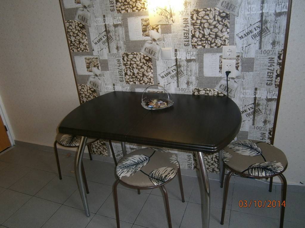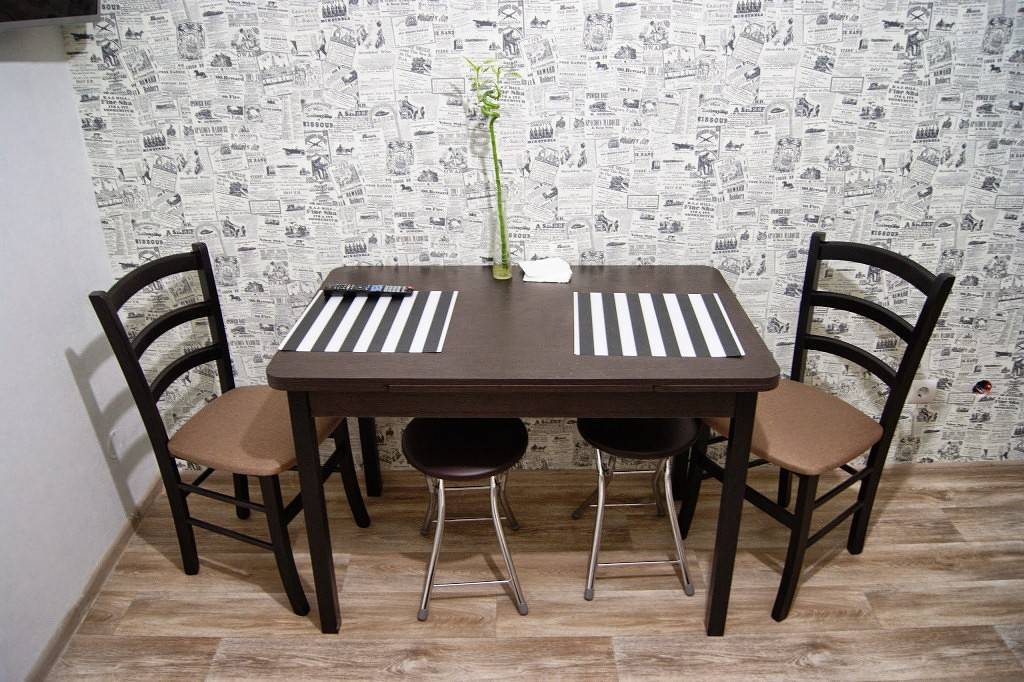 В случае прихода гостей стол можно отодвинуть от стены и создать дополнительные места. Единственным минусом будут являться углы стола. В маленьком помещении они легко могут стать причиной травматизма.
