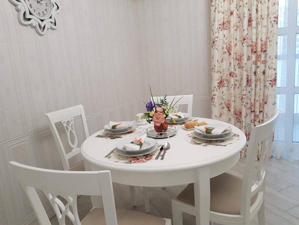 Круглый стол подойдет практически для всех дизайнов. Особенно выгодно будет смотреться в скандинавском и классическом стиле, а также в дизайне стиля прованс.