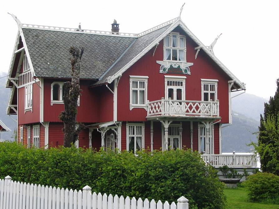 Норвежские дома достаточно сдержанные, без витиеватых узоров и вензелей. Иногда встречается красивая резьба по дереву, которой украшают заборчики или беседки у дома. Но что самое интересное, так это использование ярких красок в оформлении домов. Красные, темно-бардовые, зеленые, желтые — такие дома можно встретить на берегу фьердов. А в деревнях в XIX веке дома украшали росписью — рисовали розы и другие растительные узоры. Современные дома Норвегии выполняются в минимализме, с четкими геометрическими линиями, сдержанных оттенков.