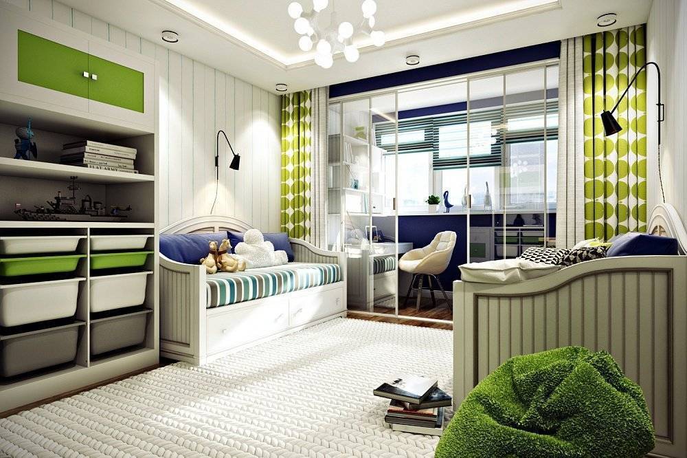 Объединение двух пространств позволит увеличить в детской комнате площадь для игр, хранения игрушек, личных вещей. В появившейся зоне можно поместить письменный стол, стеллаж с книгами, сделать спортивный уголок, обустроить место отдыха или пункт наблюдения за звездами.