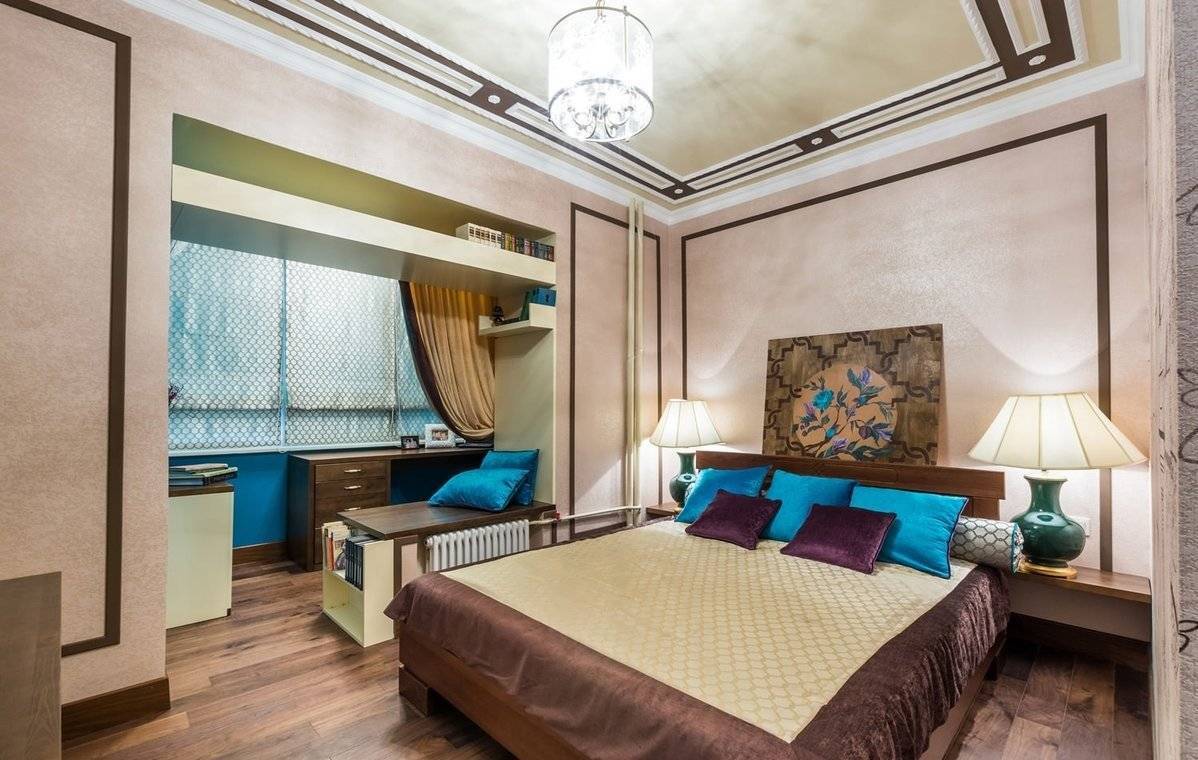 Если слияние спальни с балконом происходит для увеличения пространства, оформлять такую комнату надо в одном стиле. Подоконник убирают полностью, делают единое напольное покрытие.