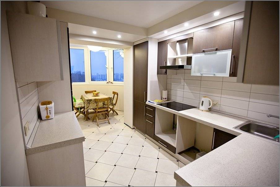 Убрав перегородку и объединив кухню с лоджией или балконом, можно оптимизировать пространство.