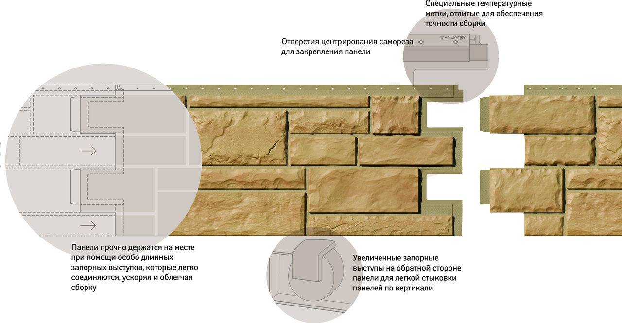 Штампованный рельеф, повторяющий фактуру различных видов кладки, покрывается несколькими защитными и декоративными слоями, в результате чего появляется панель с очень достоверно выполненной поверхностью.